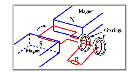 and a loop of wire which rotates in the magnetic field of the magnet. As the