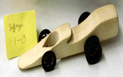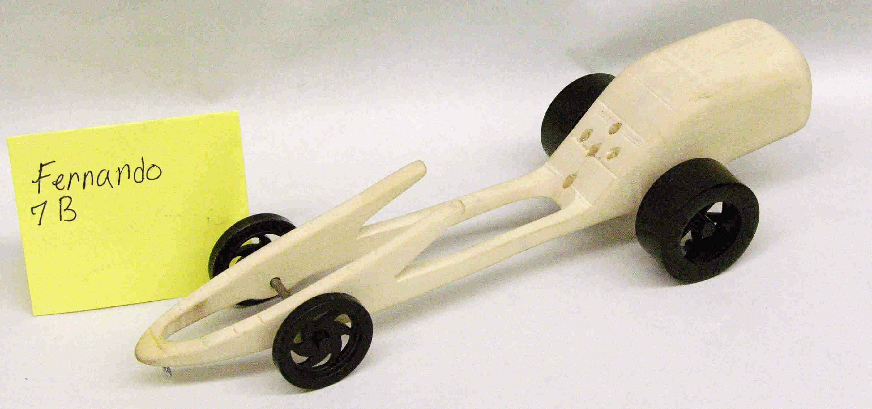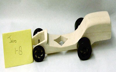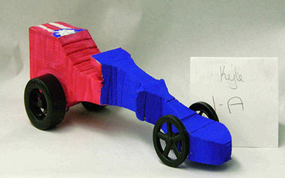 Students start with a block of wood, they shape it, drill holes for axles and a CO2 cartridge.